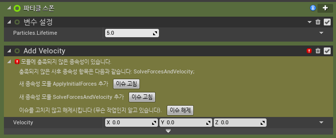 "Add Velocity"모듈을 추가하니 에러가 발생합니다.
