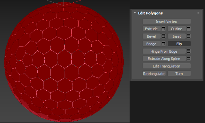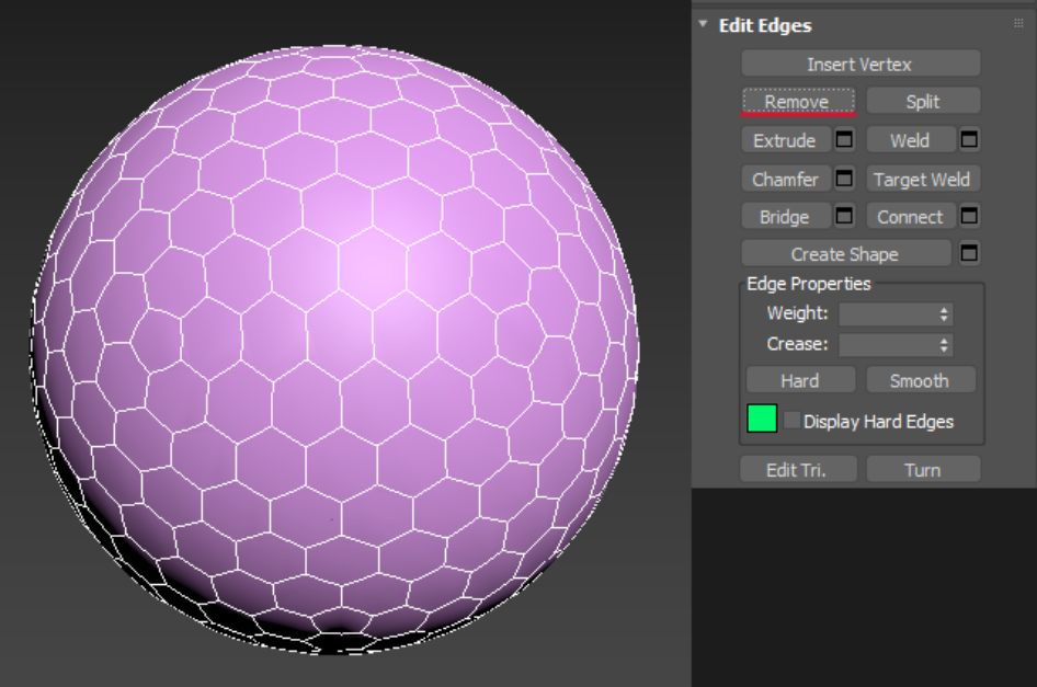 선택된 엣지를 지우면 헥사곤 패턴 구체 모델이 완성됩니다.