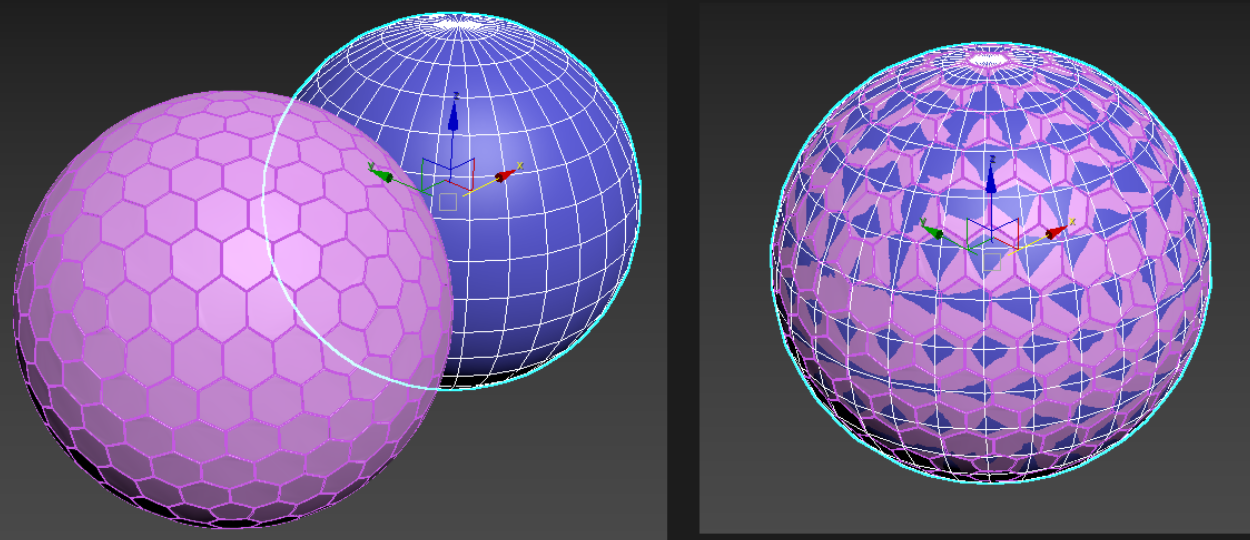 일반 Sphere를 생성후 헥사곤 스피어와 겹칩니다.