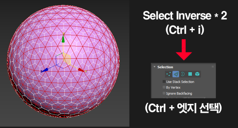 아까 제작한 GeoSphere 모델로 돌아가 위와 같은 작업을 시행하여 라인면을 제거합니다.