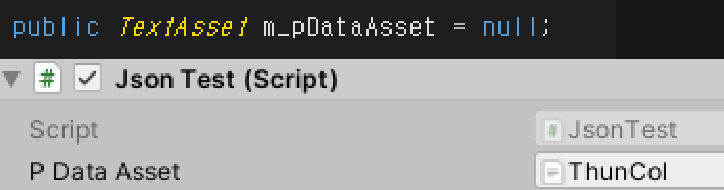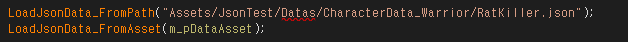 실제 사용 예시이고 에셋은 TextAsset클래스를 public등으로 선언해서 Json데이터를 가져오는 방식을 뜻합니다.